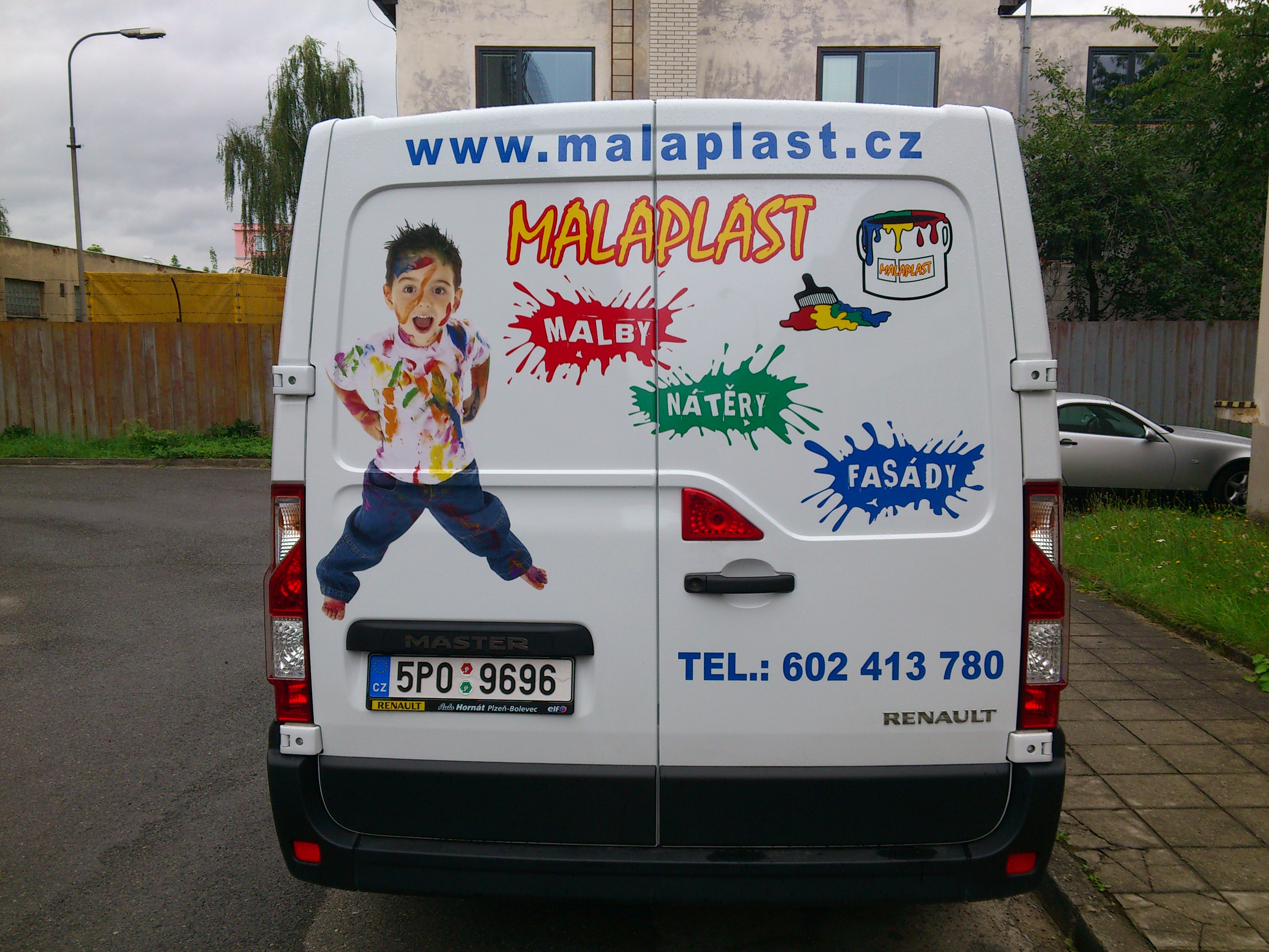 Grafický návrh a polep zadních dveří dodávky pro firmu Malaplast.